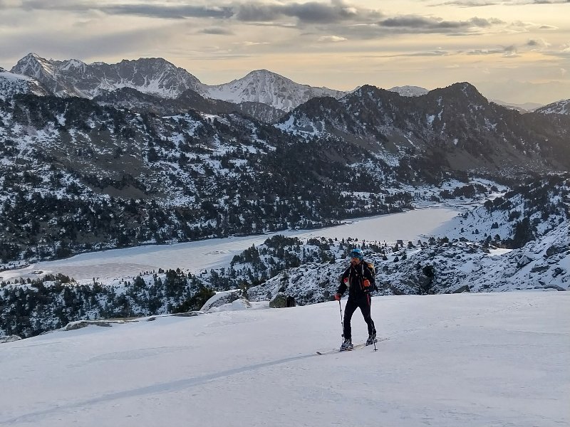 Skimobike al Massís del Neouvielle. Pics de Heche Castet i Neouvielle. - Pujant cap a Neouvielle amb lac d'Aumar al fons |