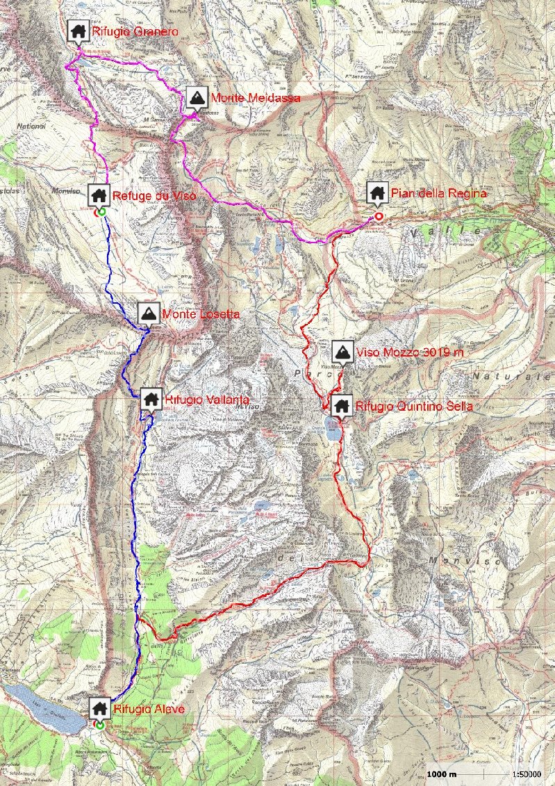 Giro al Monviso en 3 etapes i amb 3 3000 m - Mapa etapes