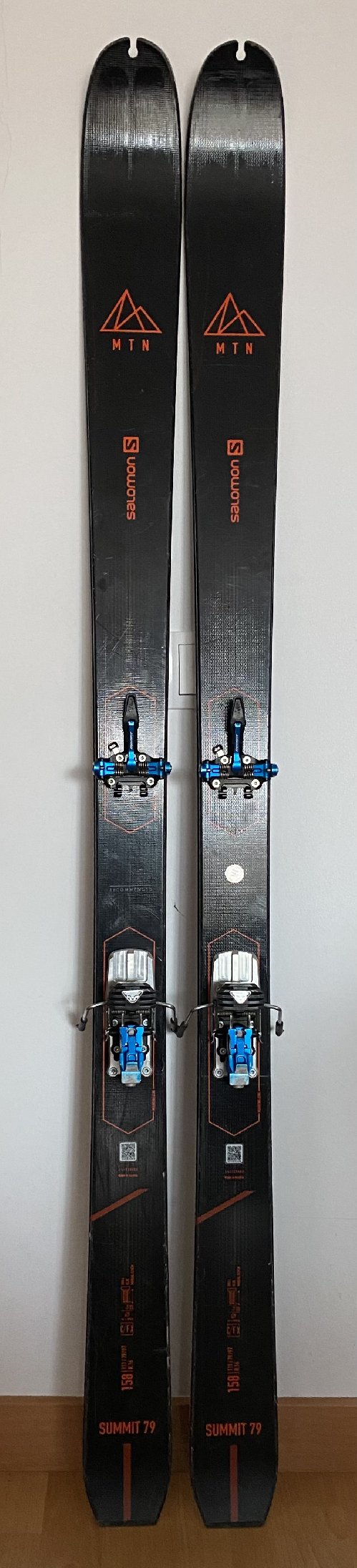 Equip format per esquis SALOMON SUMMIT MTN 79 de 157 cm amb fixació lleugera DYNAFIT SUPERLITE 150 amb placa d’ajust i frens (desmuntables) i pells Salomon MTN79 amb tensor davant i darrera.