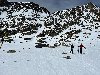 Del coll al cim amb grampons, es podia pujar amb esquis pero no baixar, del coll vam baixar cap el refugi i estany de montmalús, amb neu primavera al punt de cocció….posar pells i de nou al coll per baixar cap a grau roig , amb neu dura i de seguida crosta fins les pistes sense trepitjar on retorna el plaer del bon esqui.