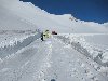 Caminem per la carretera fins a la gran curva on comença la Neu i la Vall del Pie Blanc s’endinça. Les màquines de truere neu estan treballant.