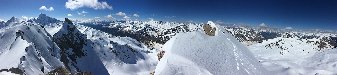 Baixem del cim amb esquís i el boregem per la cara E. Anem a pujar la Rocca Rosa que està just al costat i té una pala final molt xula.